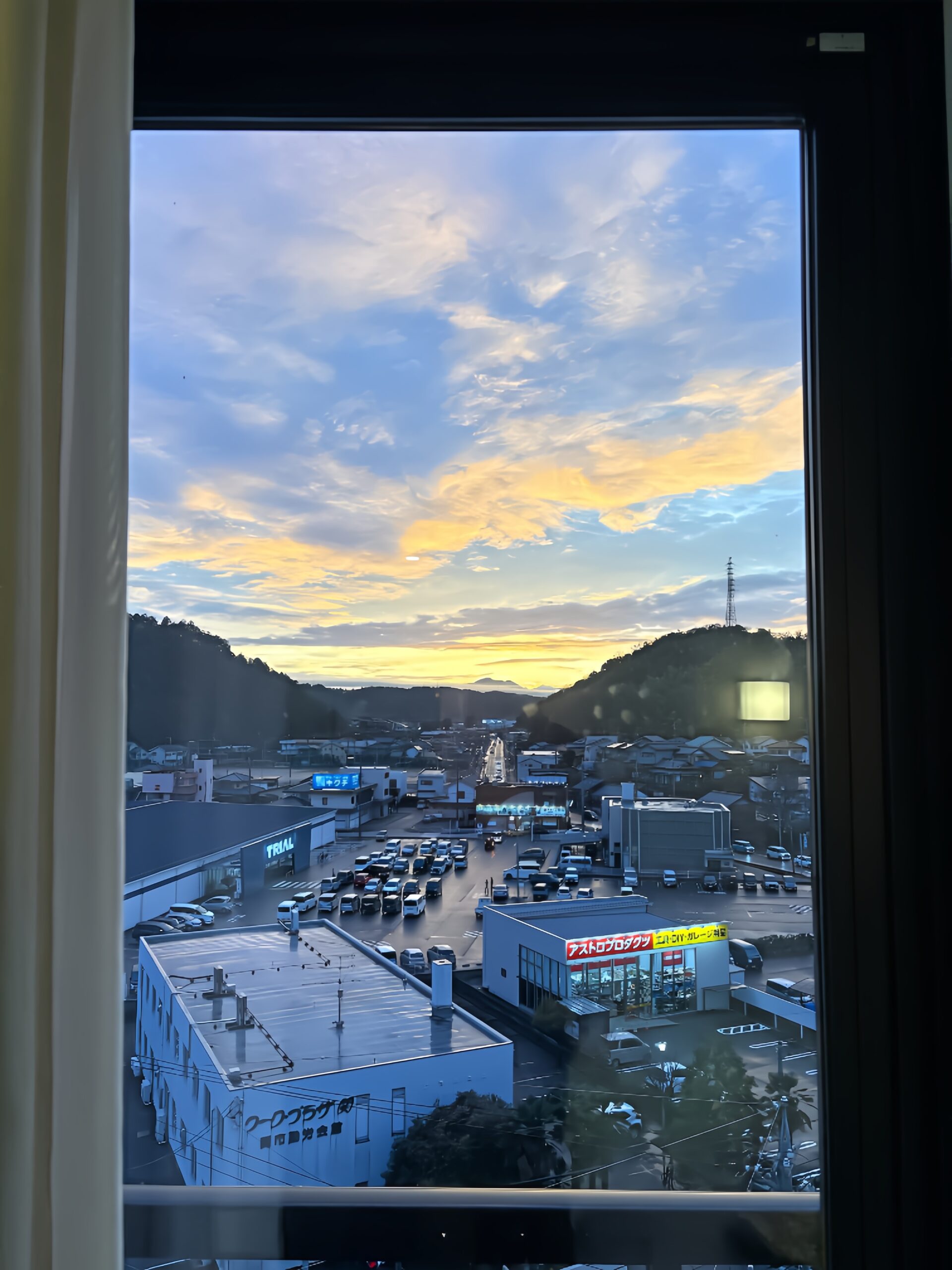 窓を開けると、沈みゆく太陽が真正面に見える、まるで特等席のような場所だった。
