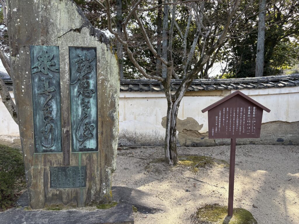 境内に入ると、一休和尚の筆による「諸悪莫作・衆善奉行(しょあくまくさ・しゅぜんぶぎょう)」という言葉が刻まれた大きな石碑が目に飛び込んできた。