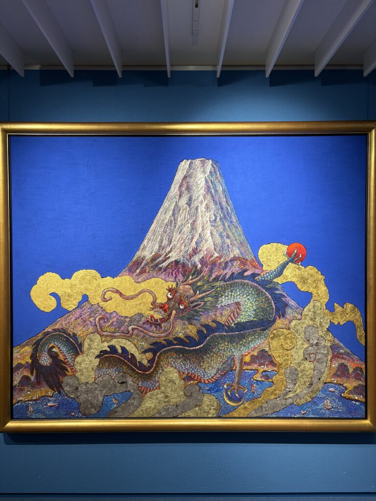 たった今描き上げられたばかりのような瑞々しさと、力強い脈動。風神雷神の足元にパラボラアンテナや風力発電が設置されていたり、七福神が宝船ではなくジェットスキーを操っていたり。古典的なテーマを現代的な構図で再解釈するその独創性には、遊び心と鋭い感性が同居していた。