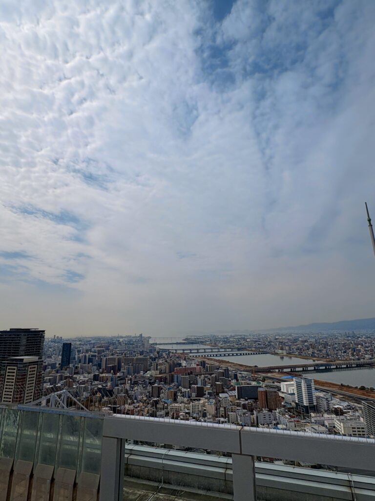 今日は地上から見上げるのではなく、高い場所から海を眺めたかった。最上階から遠く広がる大阪湾を見下ろす。