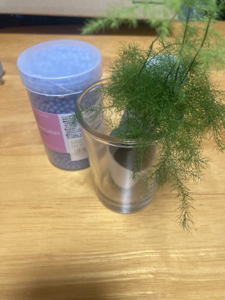 水の流れるポリポットに揺れていたアスパラガスを手に取ると、